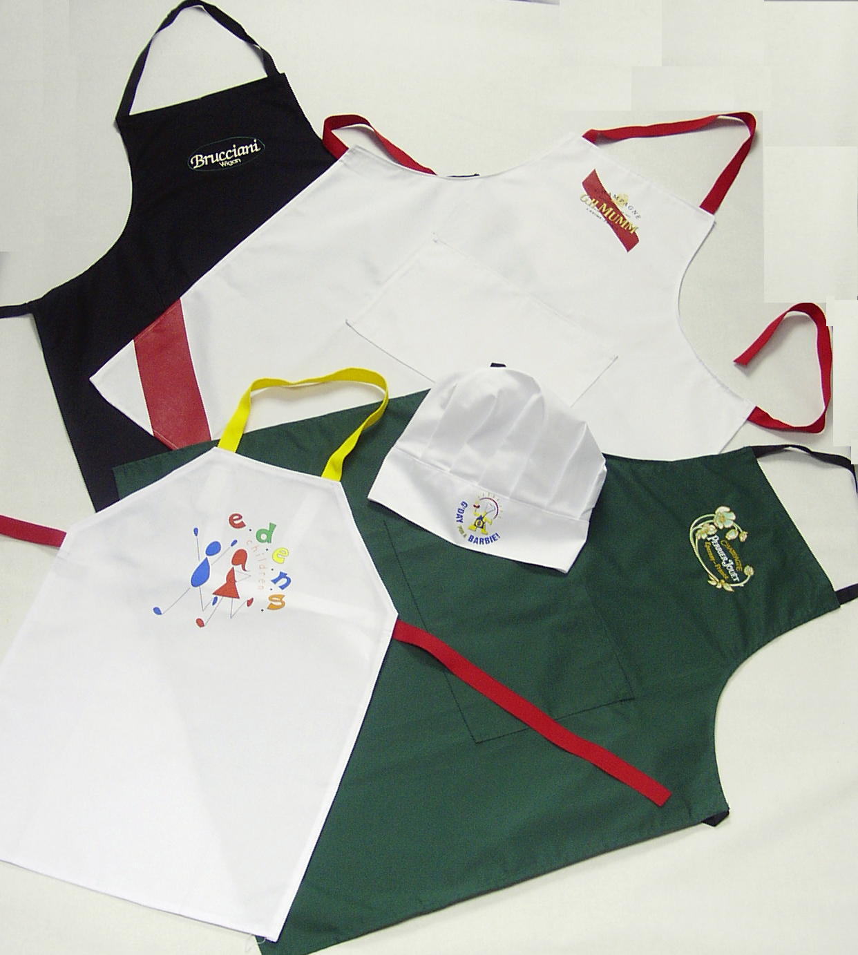 This can extend into your Kitchen and Restaurant too with items like...Chef's Jackets and Hats, Food Industry Coats,Tablecloths, Tea-Towels Leather Bill Presenters