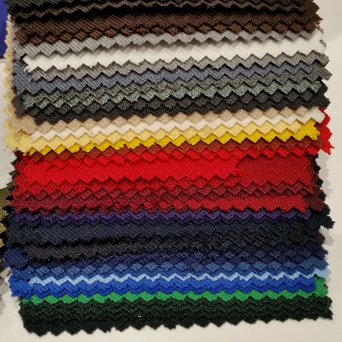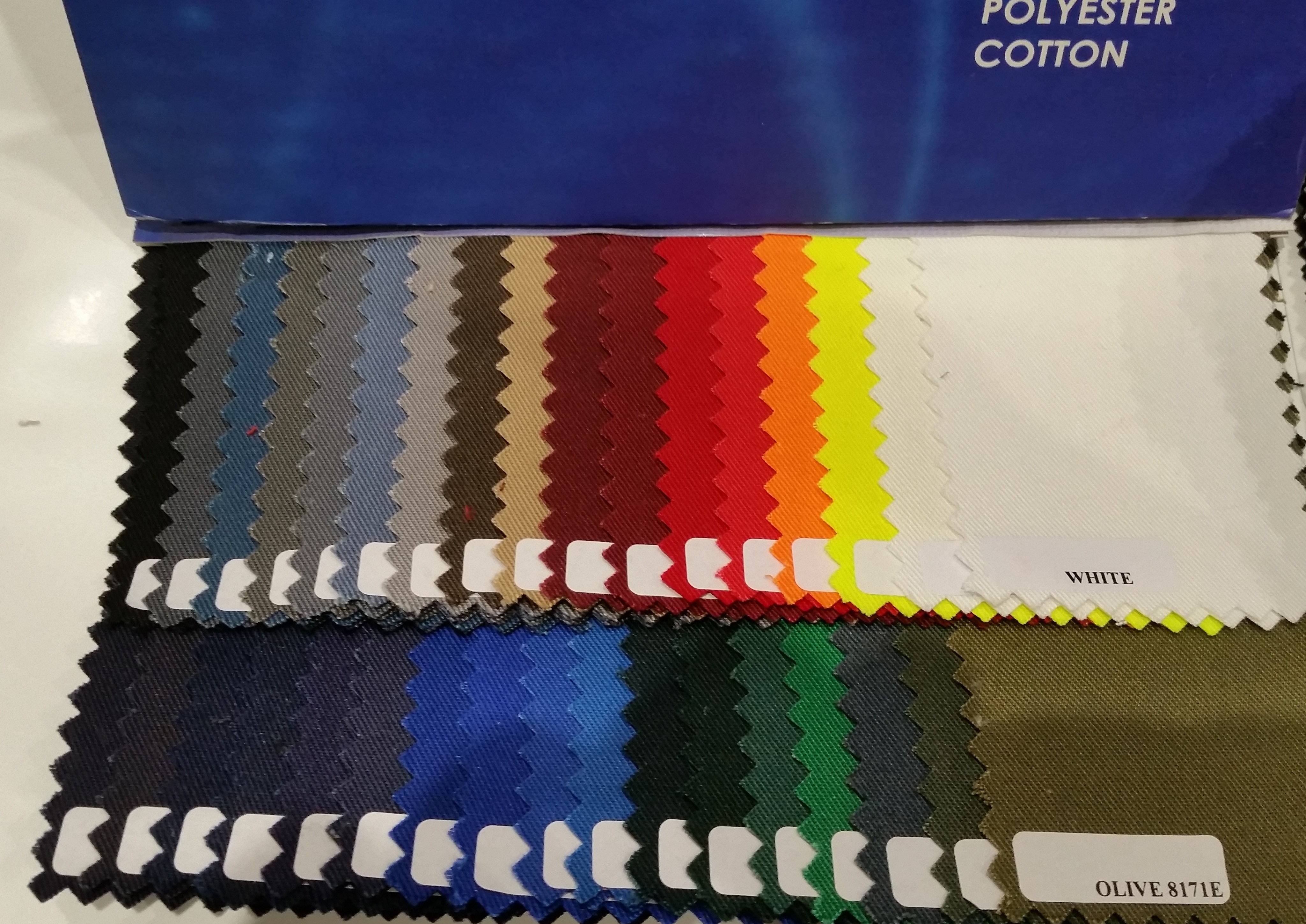 Our easy-care Twill is Woven in Britain don't put up with imported drab colours that make your tablecloths look faded from new. Choose VIBRANT,BRIGHT,DEEP RICH! - Hand Sewn and Hemmed on all 4 sides with all corners reinforced for peace of mind - IF YOU CAN'T FIND YOUR CORPORATE COLOUR BELOW WE CAN PANTONE MATCH! Your design on your colour cloth! Our Standard 'Open Back' (see picture of 'St JOHN cloth on 'about us' page)) Cloth is heavier than most of our competitors and will fit your 6ft Exhibition Trestle Table. Additional Table-clips will give it the 'Boxed' look. Some of our customers have said that we do not charge enough and assumed they would get a better job by paying more, WRONG! You may just need Printed Table Runners to cover your existing Plain Tradeshow Table Cloths... Click on any of these images to reveal more ideas..... *The Average price for an Open Back style with simple design for 25 off is 55.00 including a 72cm wide single col Print - NO CHARGE for origination A visual is prepared F.O.C before printing: Custom made sizes also produced including our special Skirted Cloth below right - Please ask for a quote! it just drops over the table top and wraps all the way around with no side seams or edges with an opening slit at the back for storage access, it's very special!' , We are often asked 'can you print my tablecloth' but the answer is generally no if it has been washed previously. Tablecloths can be Digitally Printed ALL-OVER in full CMYK colour these can be cut to shape with angled corners to avoid excess drape at the corners and cost from 85.00 and take around 10 days from your approval of Artwork and made to suit your table. Below you can see the colours that are available in our 'Minimum Iron' Poly/Cotton fabric or choose the superb 215gsm Polyester Twill that can be used from the Tumble to Table! We stock a wide range of colours in this fabric.